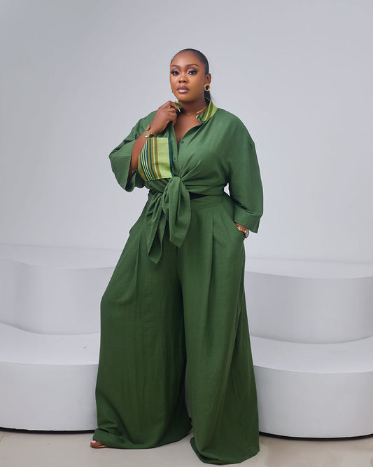 Hemd Green Shirt x Wide Leg Aso Oke Pant