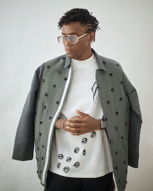 Elevate your wardrobe with our exquisite Hand-beaded Grey Jacket. Each intricate bead is meticulously placed...
