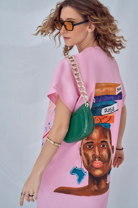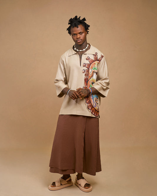 Hand Painted Linen Sarafina Shirt x Fringe Patch Skirt