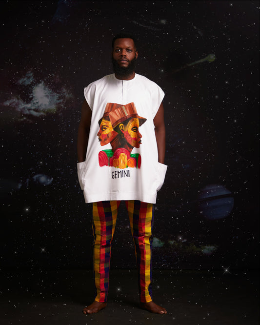 Conjunto de pantalón y danshiki pintado a mano - Géminis