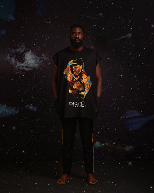 Conjunto de pantalón y danshiki pintado a mano - Piscis