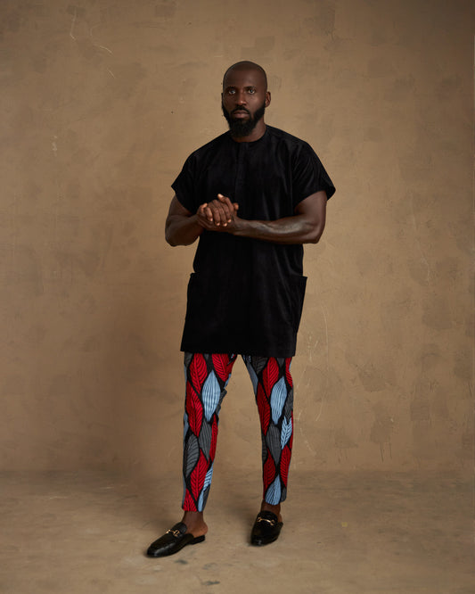 Conjunto de pantalón y danshiki de terciopelo para hombre