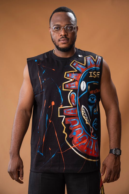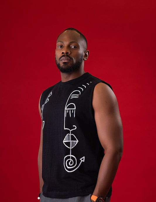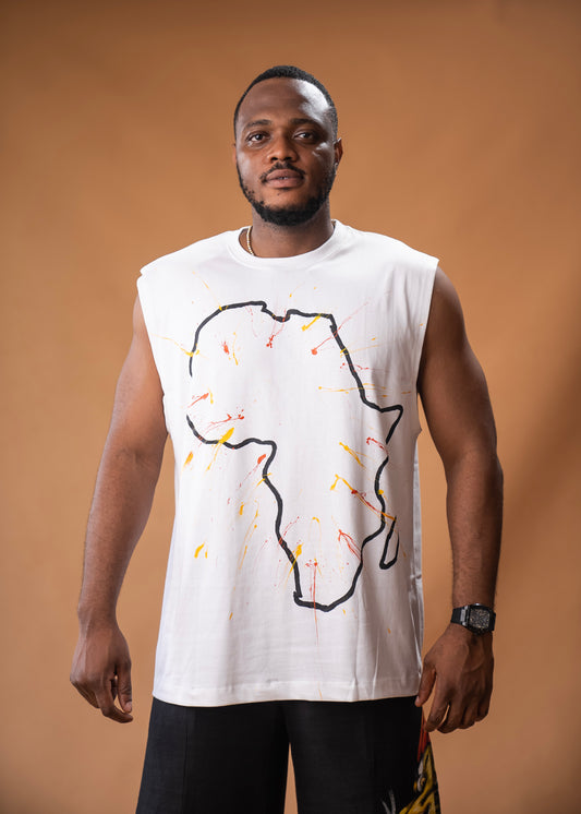 Corte relajado sin mangas Ft Arte africano pintado a mano