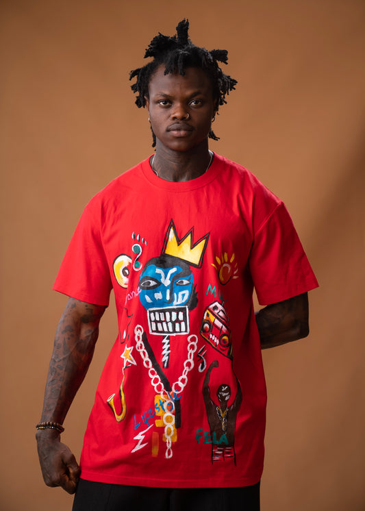 Camiseta roja de corte relajado con arte inspirado en Basquit pintado a mano