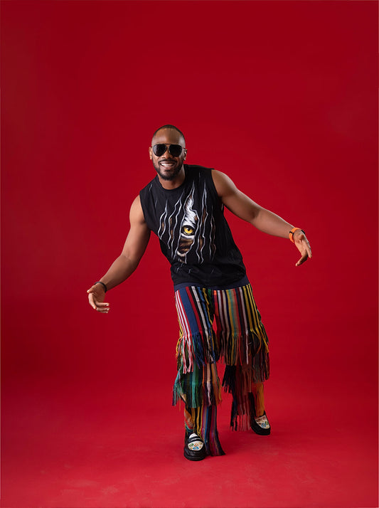 Luce un estilo único con nuestros pantalones anchos y curvos, confeccionados con tela Aso Oke...