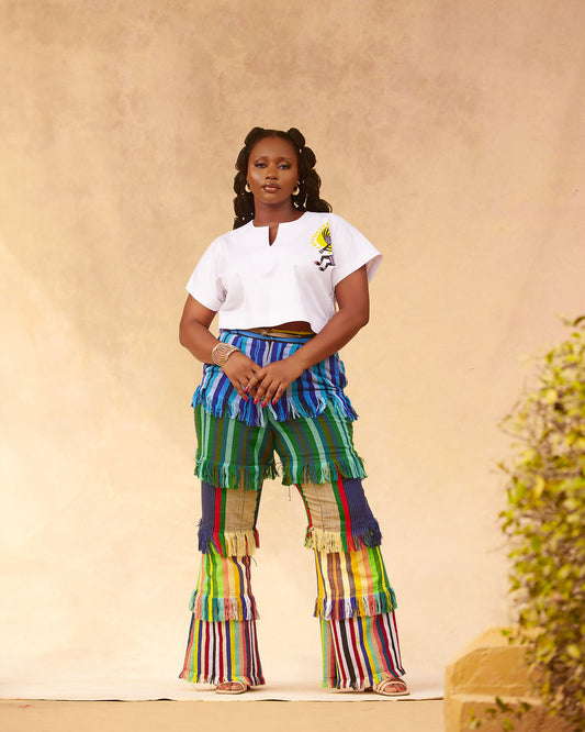 Pantalón con flecos y top corto Takunsi Aso-Oke