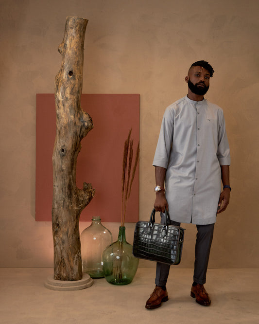 Presentamos nuestra camisa caftán y pantalón en dos tonos de gris Una fusión de sofisticación...