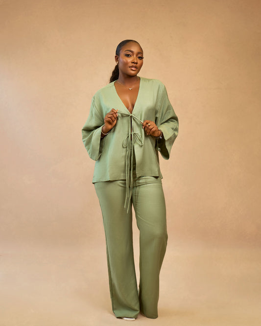 Nada expresa más comodidad que este impresionante conjunto de dos piezas en color verde. Este...