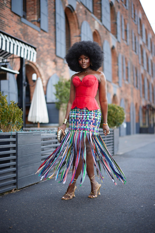 Disfrute del lujo con nuestro conjunto Trax Baskirt x Corset. La falda Trax Basket, confeccionada...