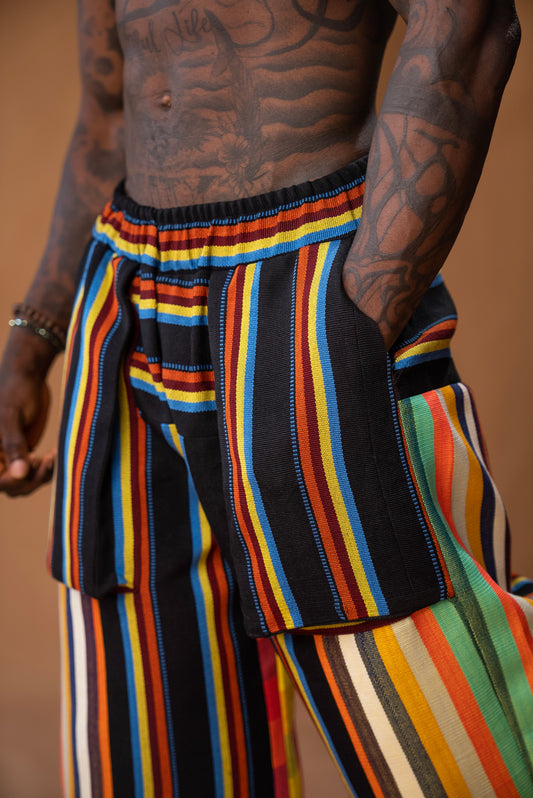 Pantalones de pierna ancha en Aso Oke Ft Bolsillos delanteros y bolsillos traseros