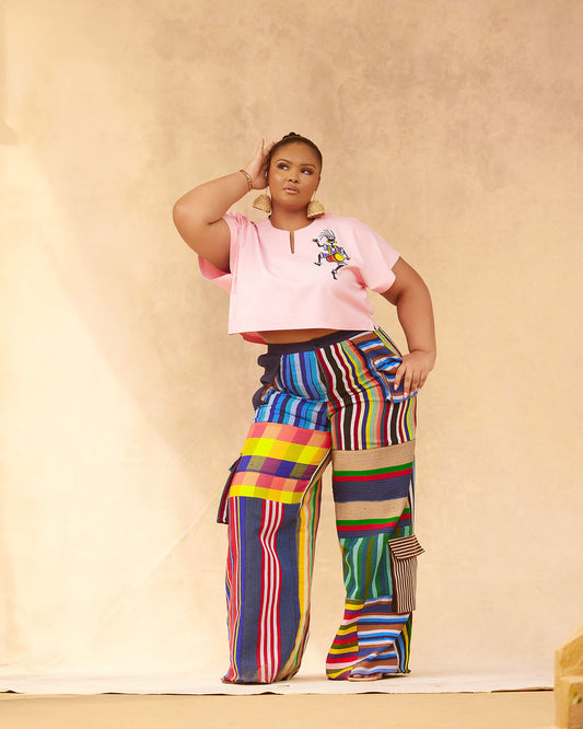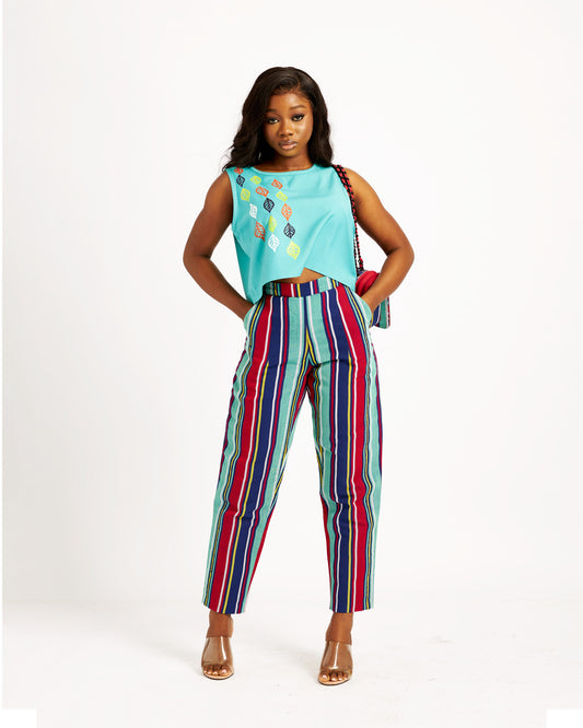 Pantalón con flecos y top corto Takunsi Aso-Oke