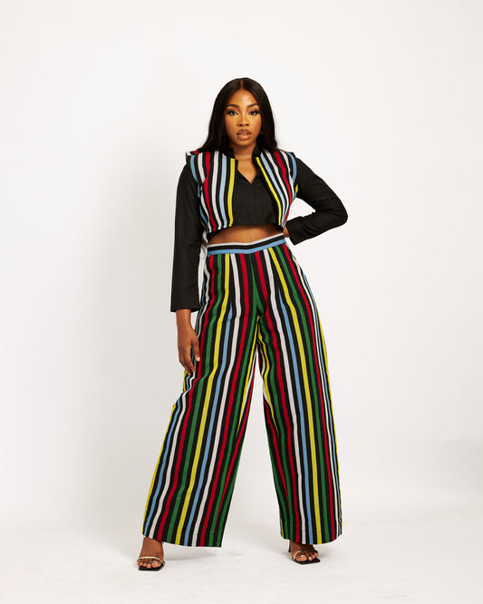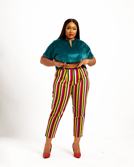 Presentamos nuestro conjunto de top corto de terciopelo y pantalón Aso Oke El Velvet Crop...