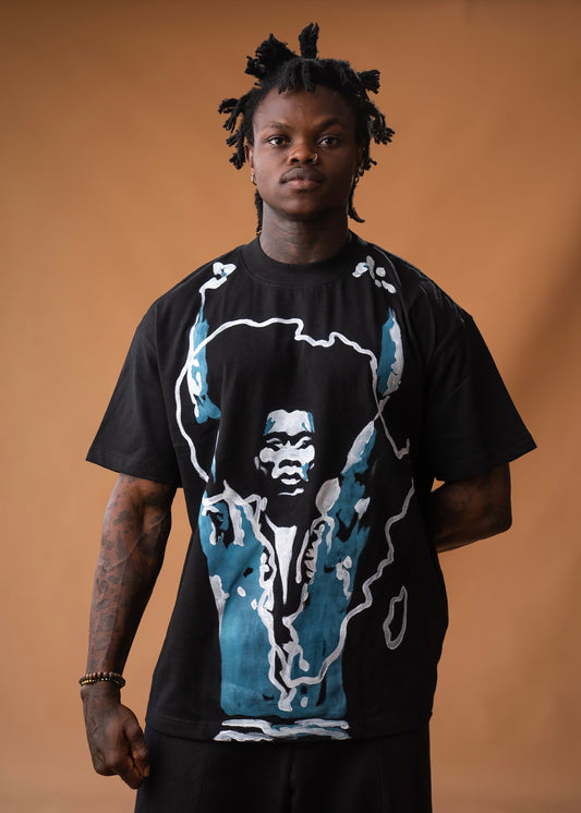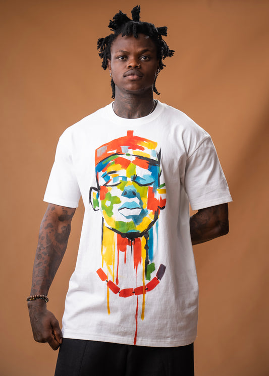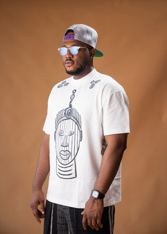 Camiseta de corte relajado con arte de hombre Igbo pintado a mano
