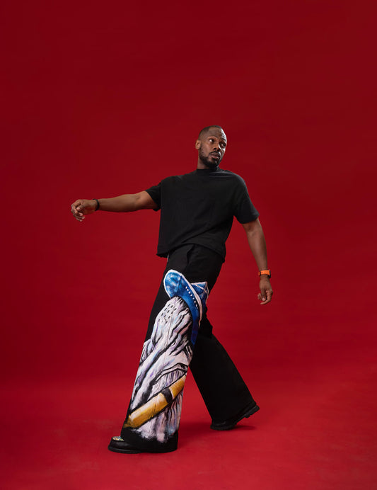 Presentamos nuestra exclusiva camiseta blanca con bolsillos Aso Oke, combinada con nuestro elegante pantalón ancho...