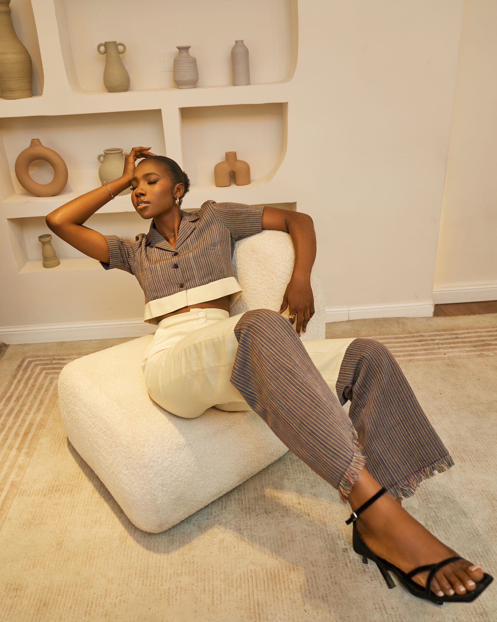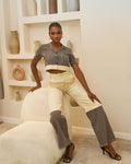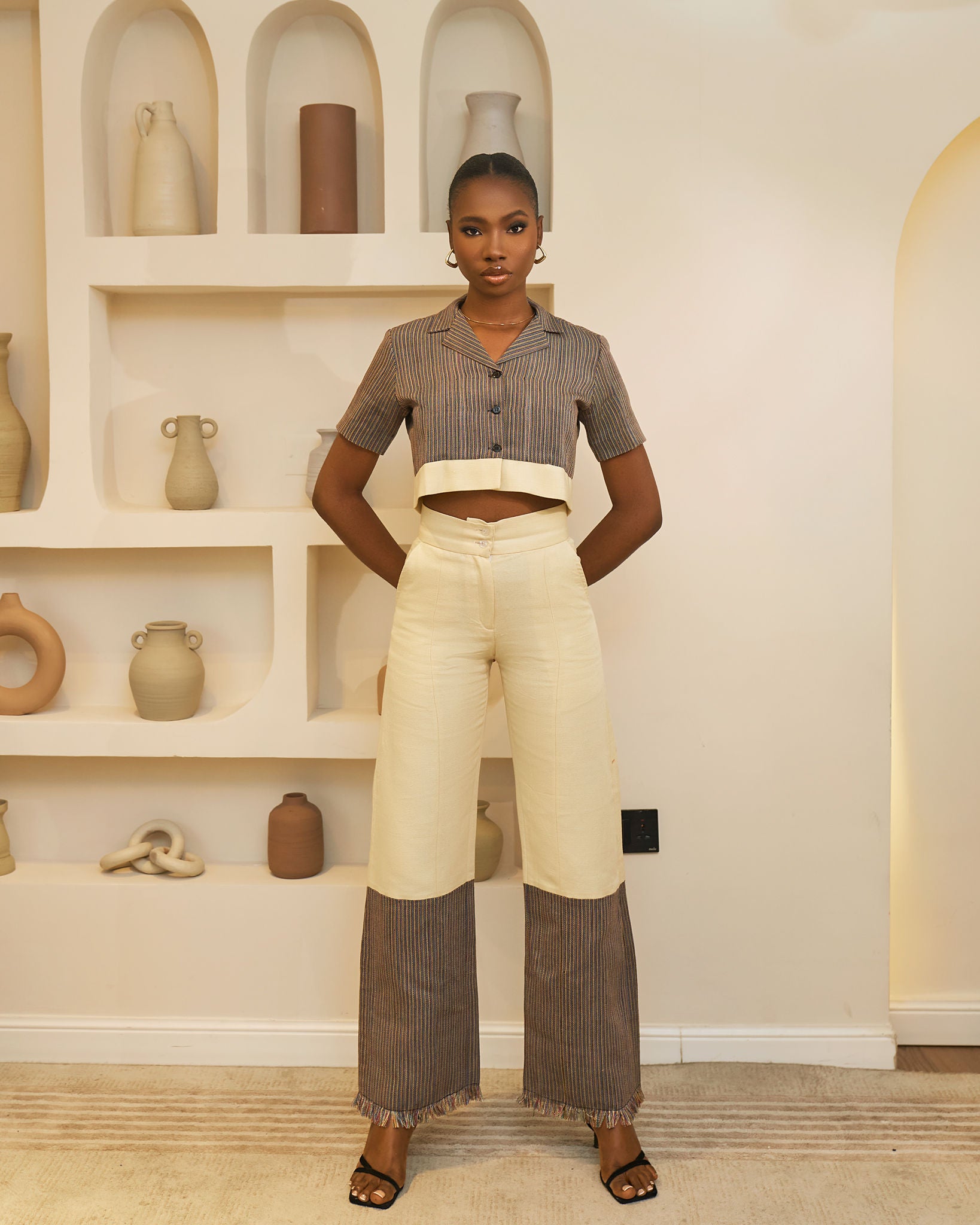 Top de cuello alto Aso Oke x pantalón de cintura alta