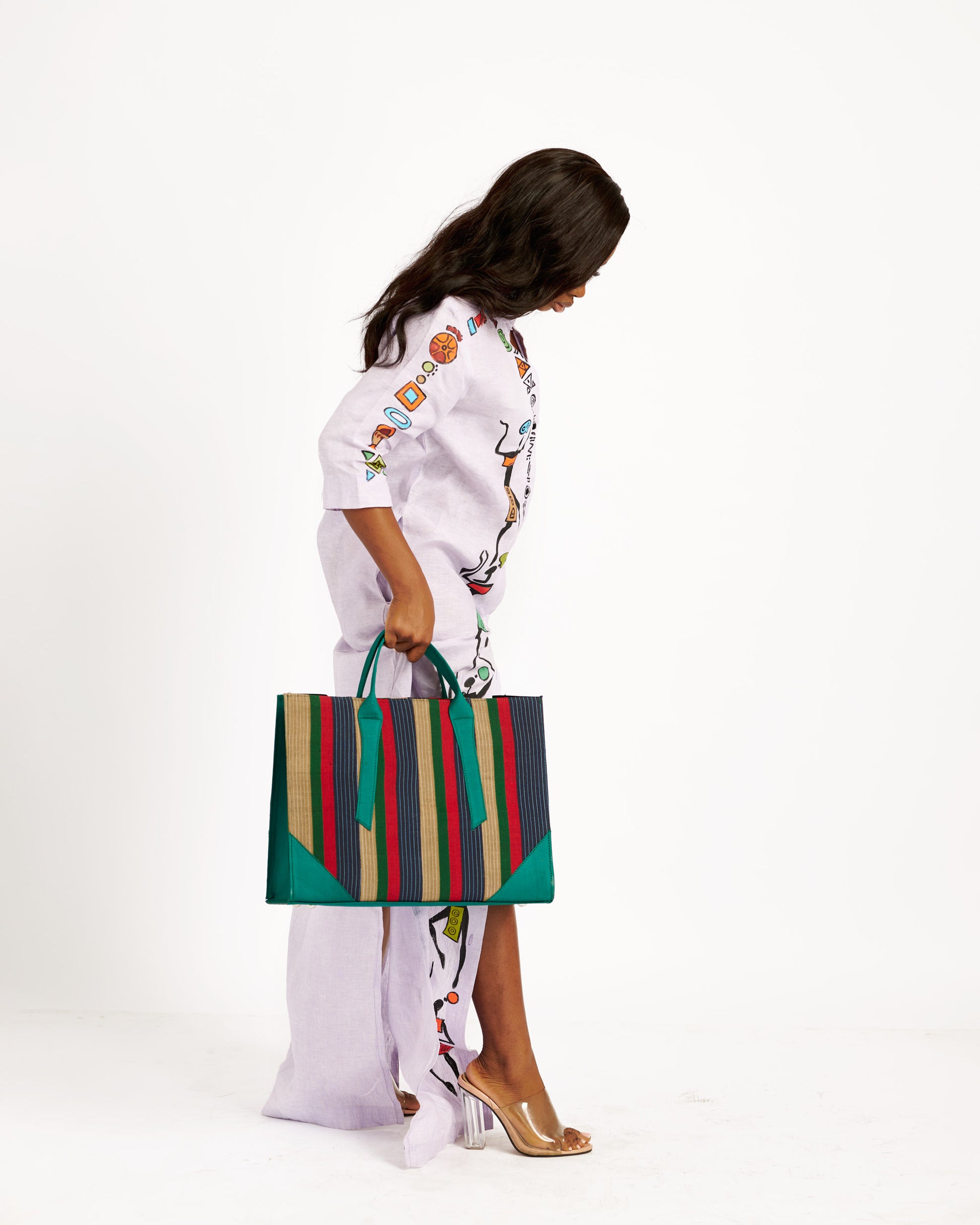 Bolso grande Aso Oke x Abaya de lino Negasi