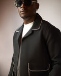 Own the room in this bold black over-jacket that refuses to blend in. The commanding pique stitch work across two oversized front pockets makes an unapologetic statement—this isn't just outerwear, it's a declaration. Built for those who push boundaries and challenge conventions, the jacket's sharp silhouette and textured detailing demand attention. Fearless styling meets functional design with pockets that actually matter. Throw it on and transform any outfit into something unforgettable. For the confident, the bold, the uncompromising.