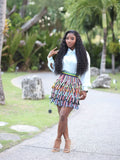 A statement short skirt crafted from Aso Oke, designed in layered multi-stripe cuts that create movement, and texture. Each layer is finished with intricate crystal beading, adding a subtle shimmer that elevates the piece from cultural classic to modern luxury.