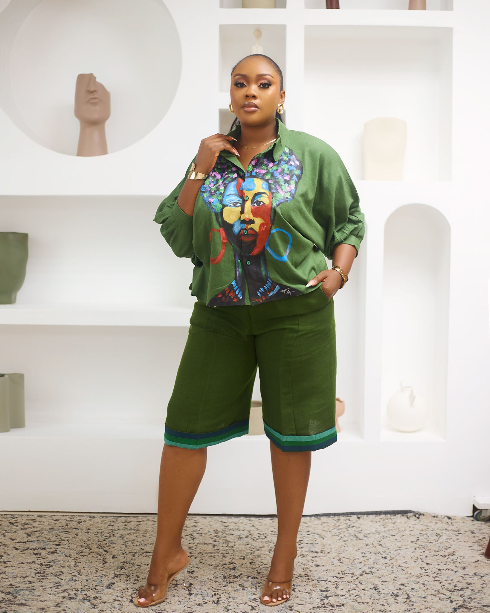 Artistry meets effortless cool. This look combines a handpainted linen top, each design carefully crafted for a one-of-a-kind finish, with tailored linen jorts that deliver relaxed structure and breathable comfort. Together, they strike the perfect balance of laid-back ease and bold self-expression — a signature Trax statement for days when culture and creativity move with you.