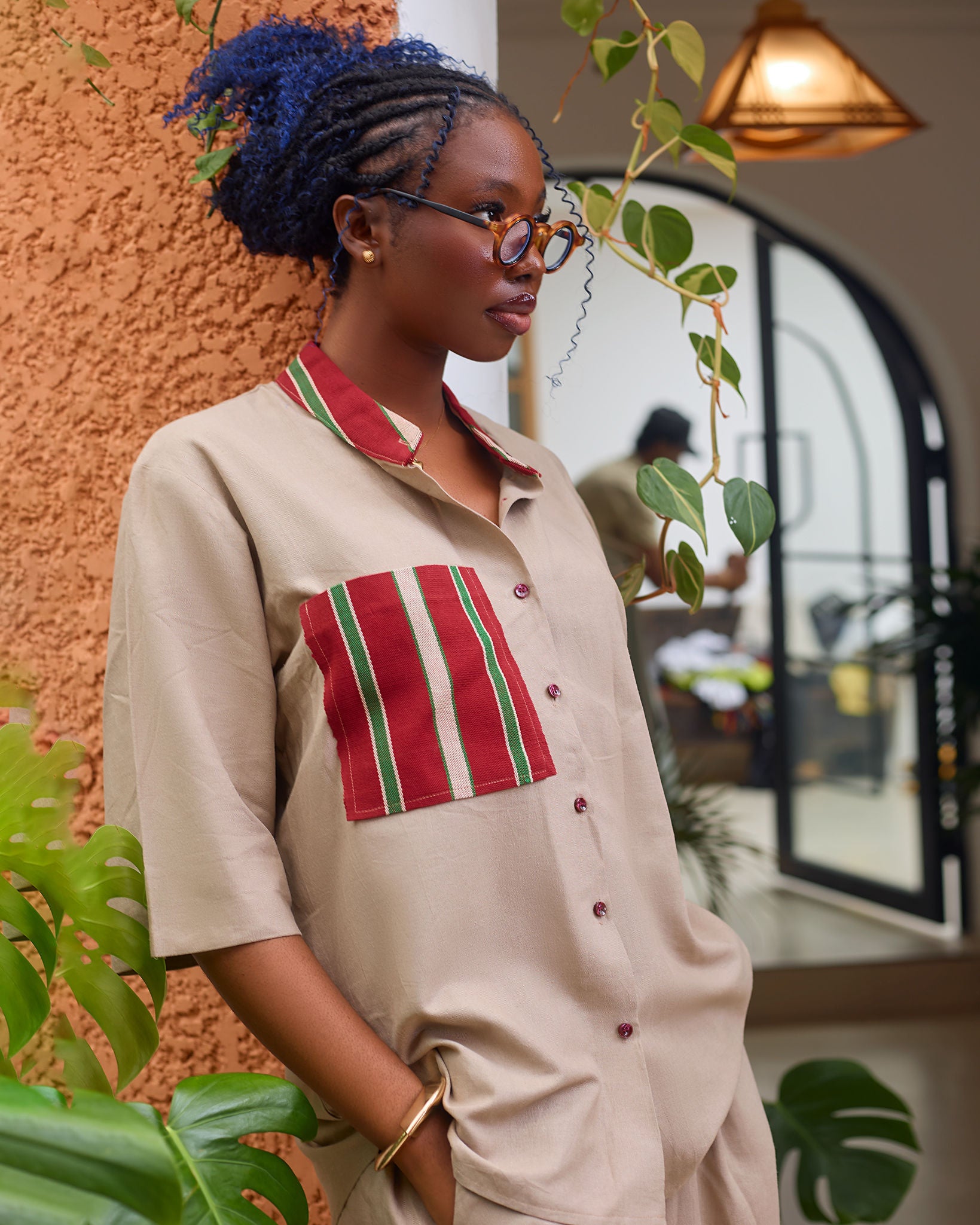 A clean, modern silhouette meets rich cultural heritage. This full look delivers effortless sophistication with a premium linen set designed for comfort and sharp tailoring, while Aso Oke pocket accents bring a bold nod to Nigerian tradition. Lightweight, breathable, and distinctly stylish, it’s a statement of heritage redefined for the contemporary wardrobe — perfect for elevated daywear, refined evenings, or standout social moments.