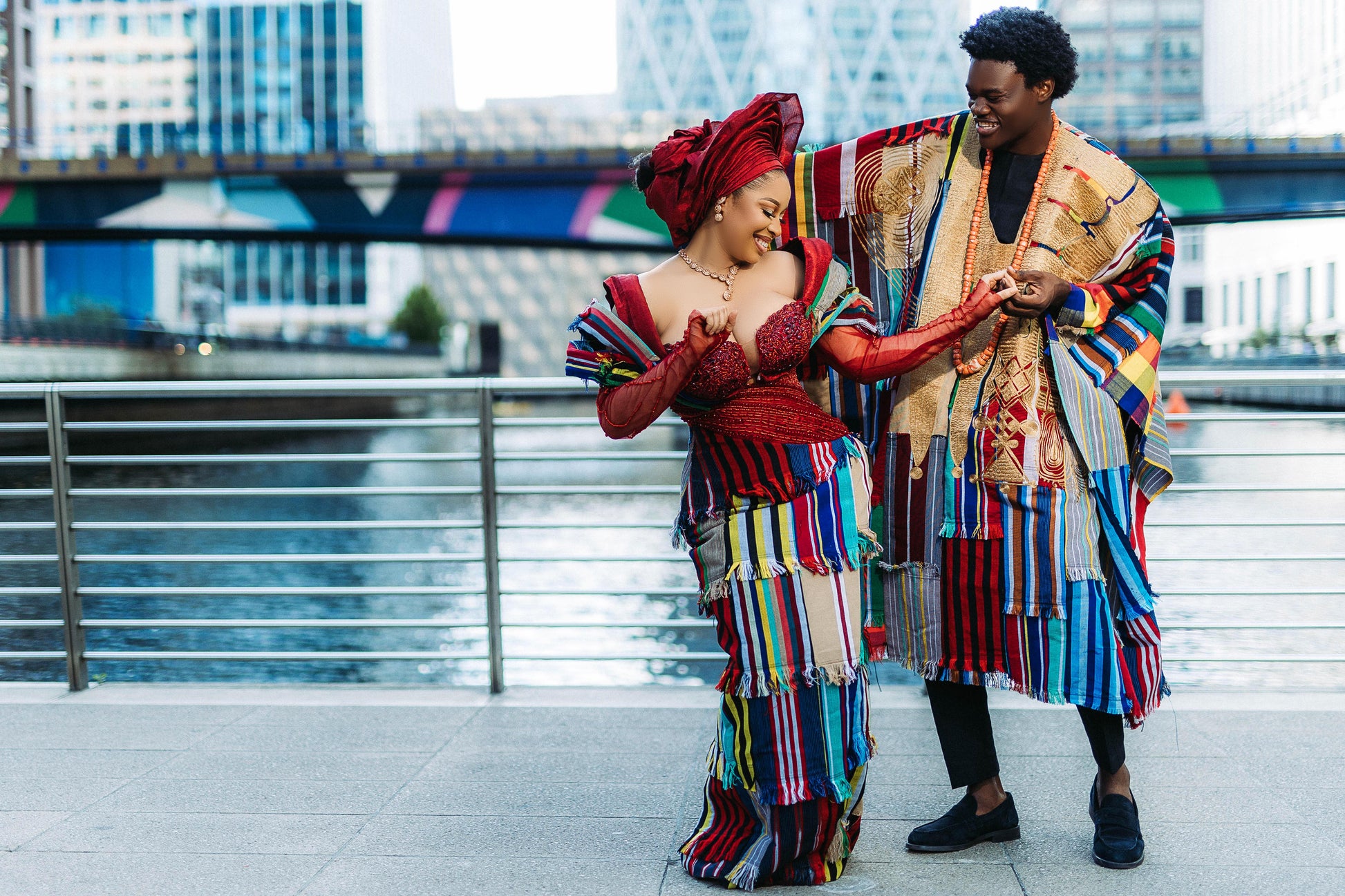 Whether you're attending a wedding alongside your king in the Onìńówọ Patched Aso-Oke Agbada, celebrating a cultural event, or simply gracing an evening with your presence, Iyawo Onìńówọ Patched Aso-Oke Dress is your declaration of regal style.