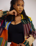 Heritage redefined. This standout ensemble fuses traditional Aso Oke craftsmanship with modern streetwear energy. The Patch Aso Oke Jacket layers bold, textured panels into a contemporary cut, while the matching jorts bring a relaxed, playful edge that keeps the look fresh and versatile. Together, they create a culture-meets-couture statement.